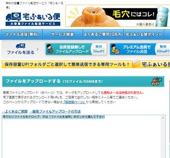 宅ファイル便:(300MBまで無料転送可能)